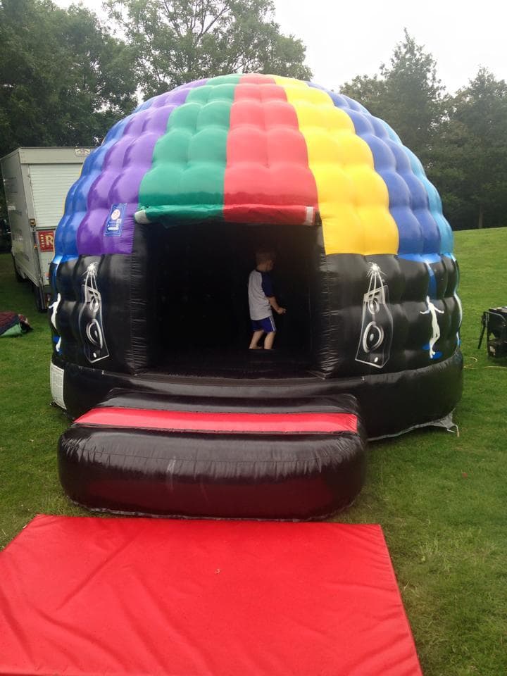 Our bright and multi coloured Disco Dome is a must have at every party. The Disco Dome isn't your average bouncy castle - it comes complete with a speaker and lights fitted. All you need to do is download a playlist on to a Bluetooth device like iPad or iPhone and we will show you how to connect. The Children's Disco Dome is suitable up to the age of 12.