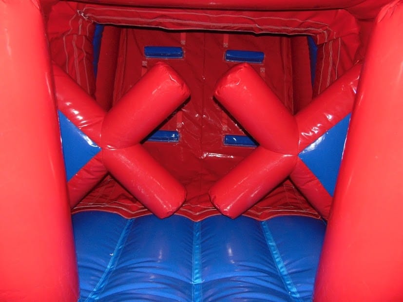 The Assault Course is made up of two large sections, two children will enter climb through the bish bash area, through the bars, past the crosses and climb up 8 steps and slide down to be crowned the winner.