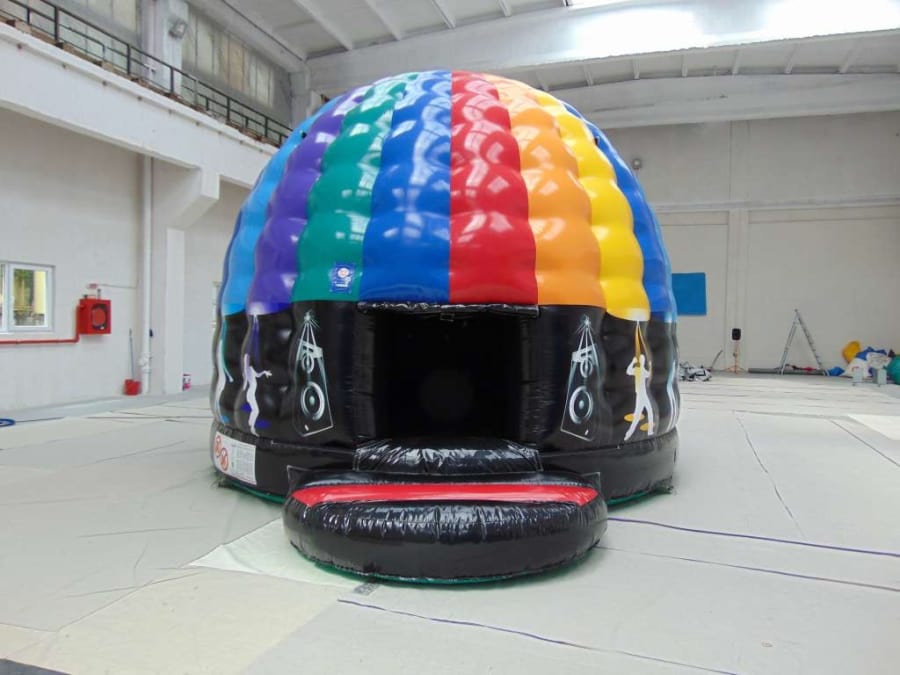 Our multi coloured design makes the Adult Disco Dome very eye catching and will be a must have hire. The Disco Dome is 4meters tall - 14ft high so please ensure there are no trees, washing lines or any other obstructions it may hit on the way up.