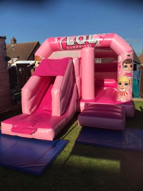 This Bouncy Castle is a must have at any party and will make your little princess dreams come true. The LOL Front Slide Bouncy Castle is only 9ft 3 in height which will fit in most halls. The measurements are 18ft length x 14ft width so will also fit in most small gardens.