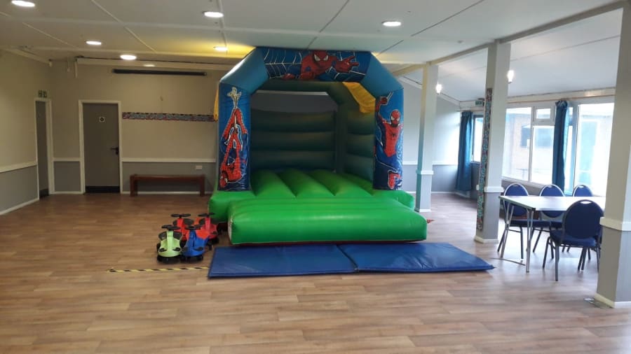 This Bouncy Castle is only 15ft long and 12ft wide so will fit in most gardens and halls. Please ensure the height of any ceiling is over 9ft 6 if hired inside.