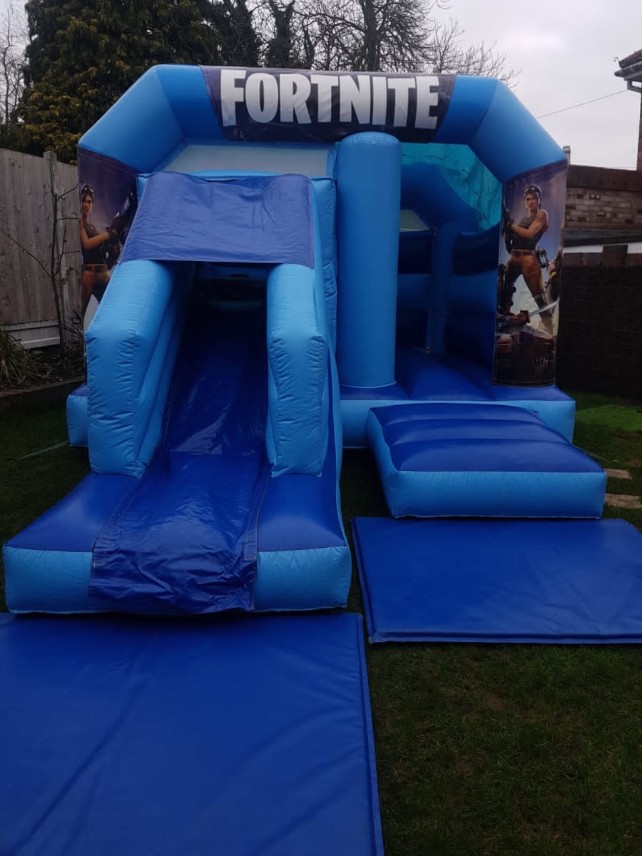 New Bouncy Castle available to hire in Dartford, Gravesend and surrounding areas. This is our new Fortnite Bounce and Slide Bouncy Castle now available to hire for gaming and birthday parties. We also have this themed castle available to hire on a castle without slide.