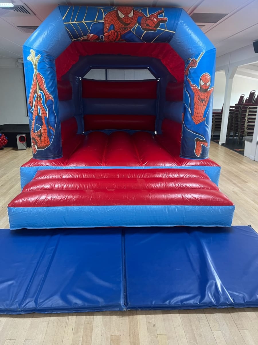 Our Spiderman Blue and Red Bouncy Castle is a perfect choice of inflatable to hire as the theme suits all Birthday Parties for both boys and girls. It available to hire both side and outside.