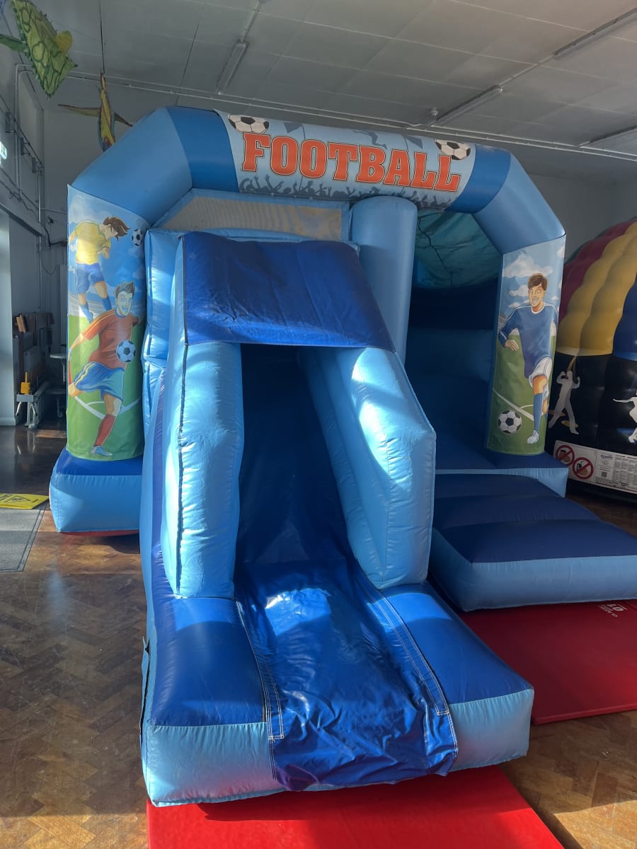 Football Bouncy Castle with Slide Brand New for 2023! This is now available to hire and we offer free delivery within local areas of Dartford.