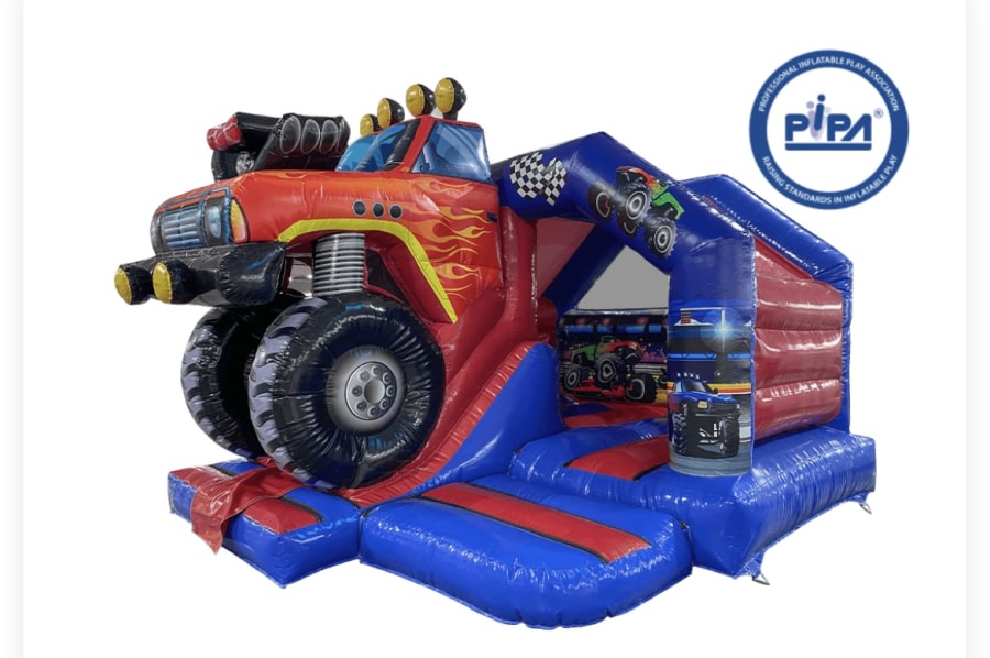 Get ready to take your party to the next level with the MonsterTruck 3D Bouncy Castle with Slide. Contact us now to reserve your booking!