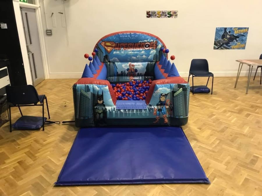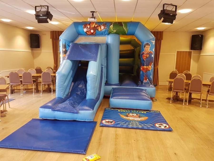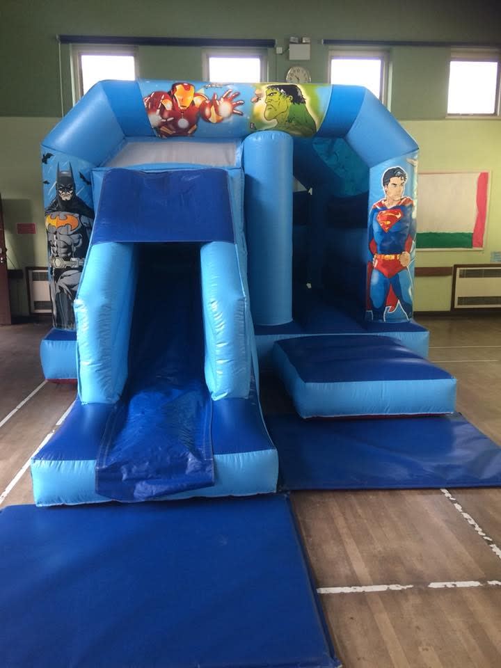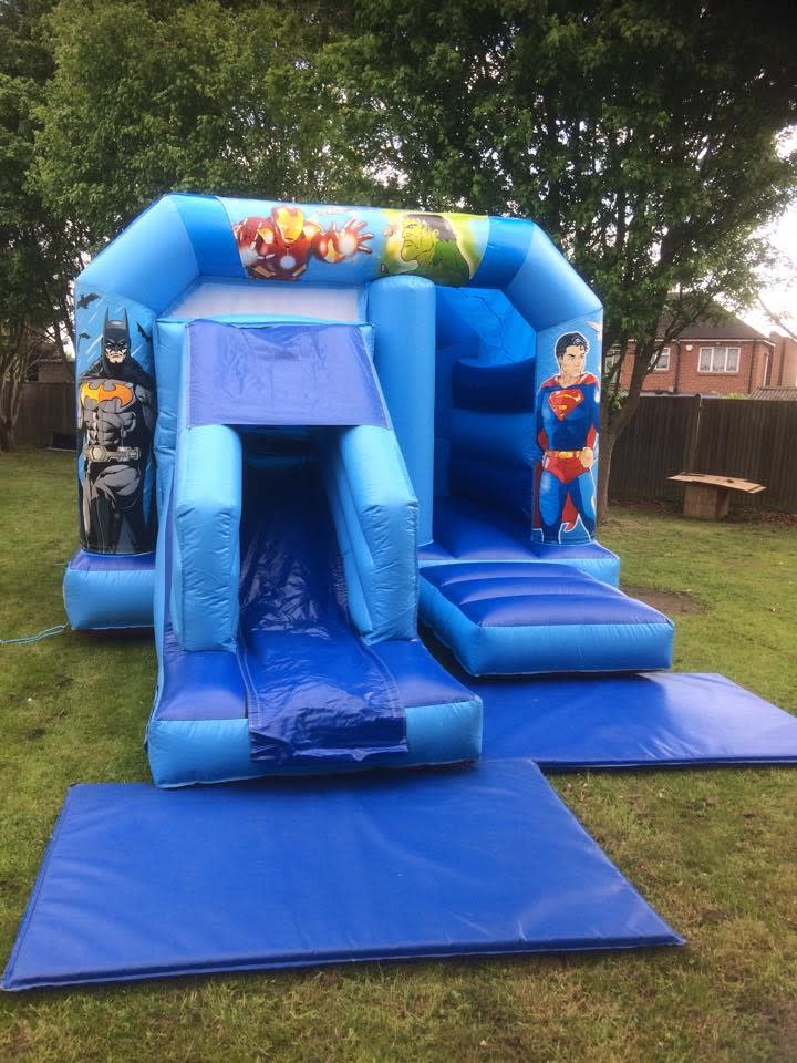 This is our new Heroes Bounce and Slide Bouncy Castle now available to hire in Higham, Maidstone, St Mary's Island, Greenhithe and surrounding areas.